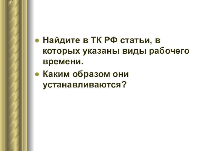 Найдите в ТК РФ статьи, в которых указаны виды рабочего времени.