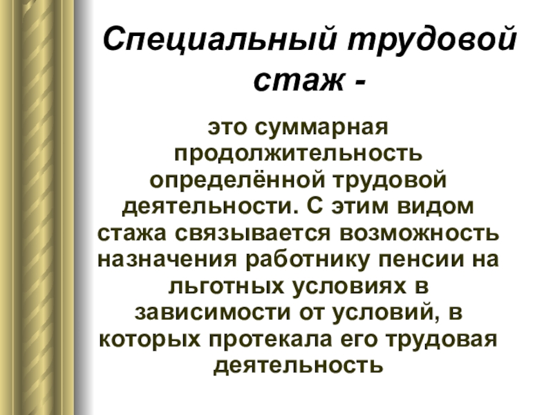 Слайд 29Специальный трудовой стаж -