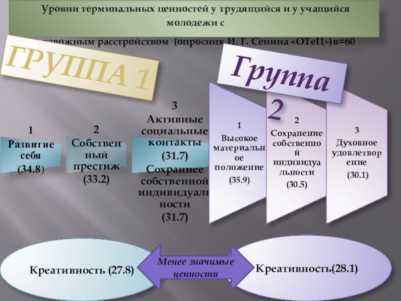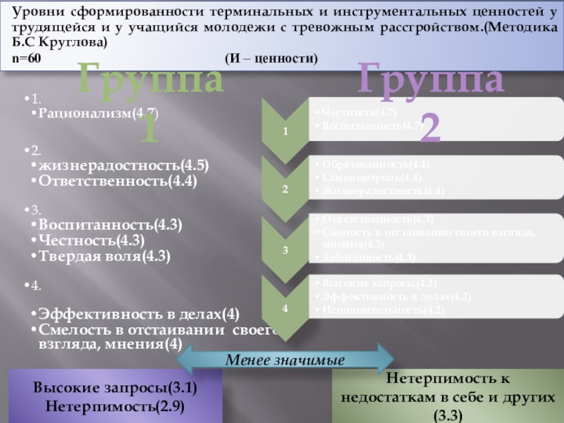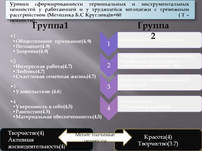 (Методика Б.С Круглова)n=60 ( Т – ценности)