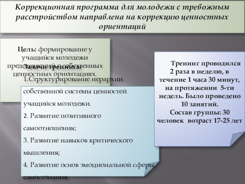 Цель: формирование у учащийся молодежи представлений о собственных ценностных ориентациях.