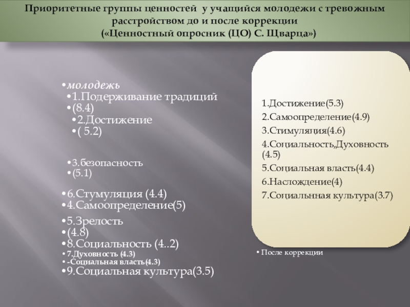 1.Структурирование иерархии собственной системы ценностей учащийся молодежи.