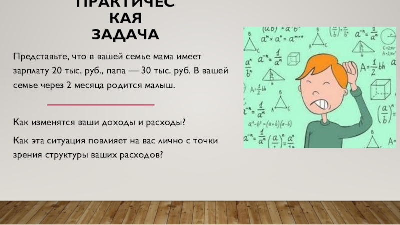 Практическая задачаПредставьте, что в вашей семье мама имеет зарплату 20 тыс. руб., папа — 30 тыс. руб.