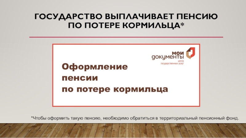 Слайд 9Государство выплачивает пенсию по потере кормильца*