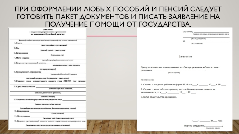 Слайд 10При оформлении любых пособий и пенсий следует готовить пакет документов и