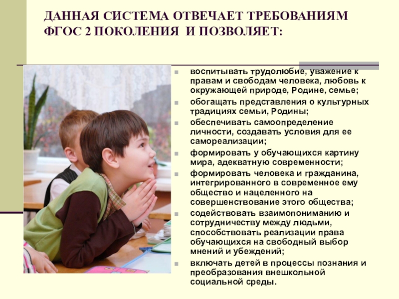 Слайд 23ДАННАЯ СИСТЕМА ОТВЕЧАЕТ ТРЕБОВАНИЯМ ФГОС 2 ПОКОЛЕНИЯ И ПОЗВОЛЯЕТ: