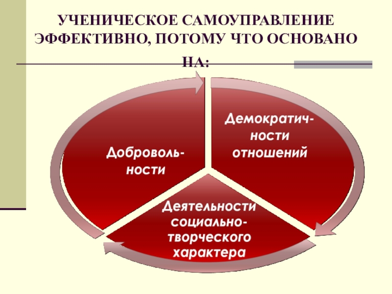 Слайд 21УЧЕНИЧЕСКОЕ САМОУПРАВЛЕНИЕ ЭФФЕКТИВНО, ПОТОМУ ЧТО ОСНОВАНО НА: