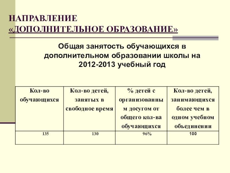 Общая занятость обучающихся в дополнительном образовании школы на 2012-2013