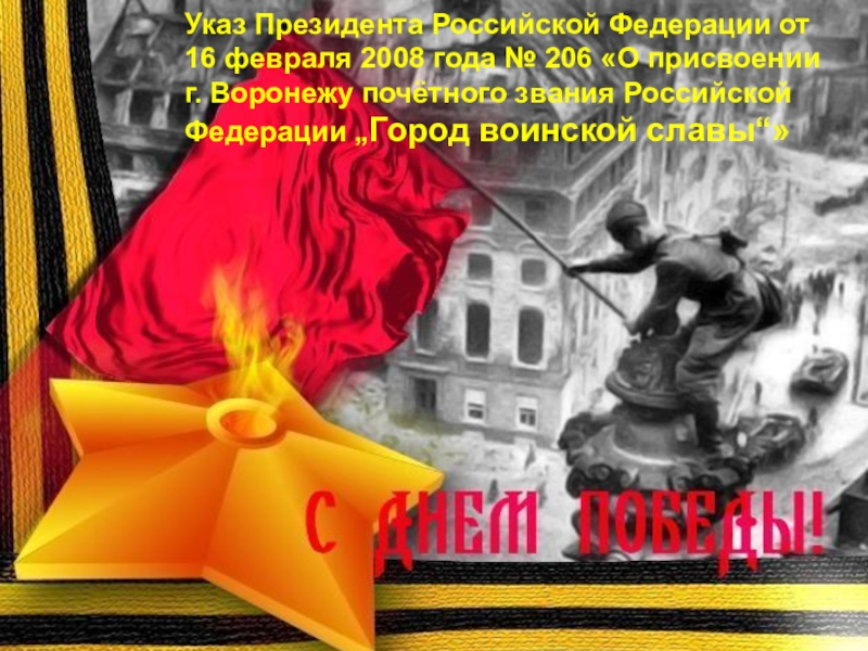 Указ Президента Российской Федерации от 16 февраля 2008 года № 206 «О присвоении г. Воронежу почётного звания Российской