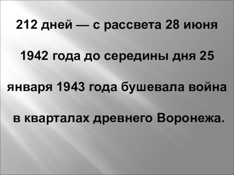 Слайд 1225 января 1943 года город был освобождён в ходе Воронежско-Касторненской операции