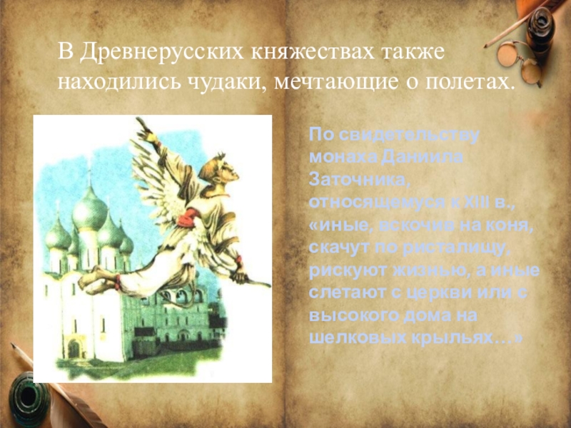 В Древнерусских княжествах также находились чудаки, мечтающие о полетах.