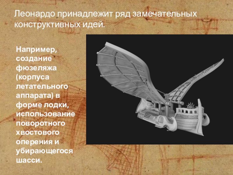 Леонардо принадлежит ряд замечательных конструктивных идей.