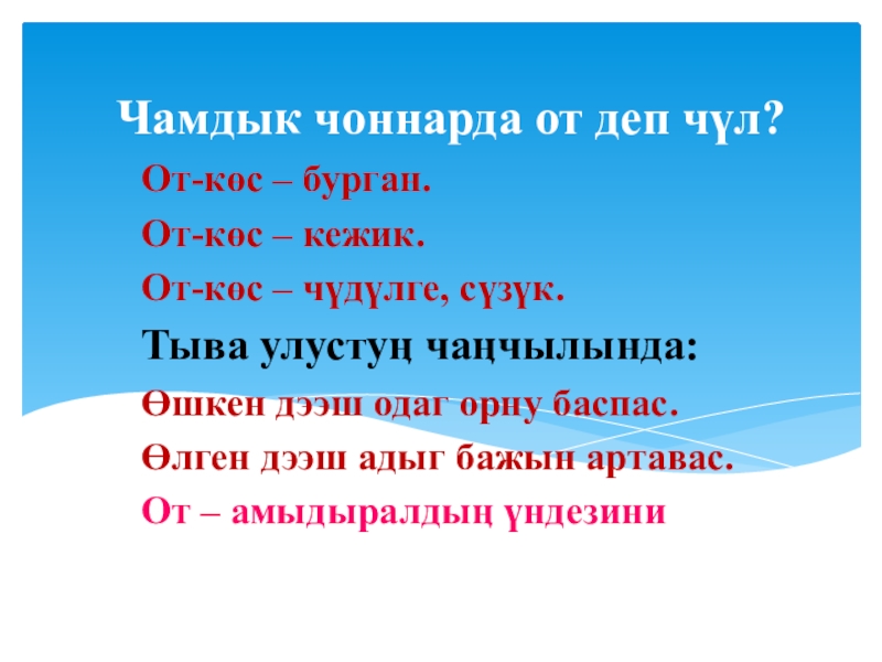 Чамдык чоннарда от деп чүл?