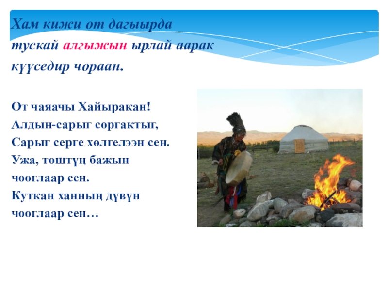Хам кижи от дагыырда тускай алгыжын ырлай аарак күүседир чораан.