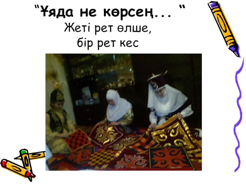 Слайд 15 “Ұяда не көрсең... “ Жеті рет өлше, бір