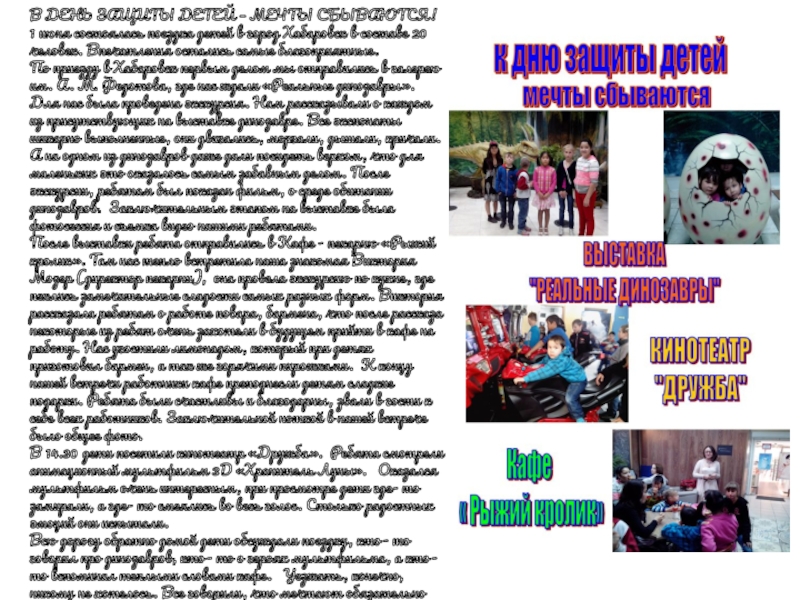 В ДЕНЬ ЗАЩИТЫ ДЕТЕЙ – МЕЧТЫ СБЫВАЮТСЯ!1 июня состоялась поездка детей в город Хабаровск в составе 20