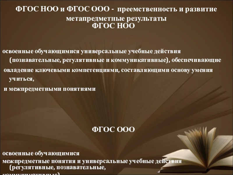 Слайд 6ФГОС НОО и ФГОС ООО - преемственность и развитие