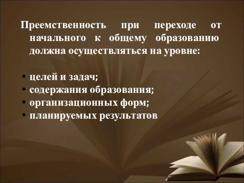 Слайд 7Преемственность при переходе от начального к общему образованию должна осуществляться на