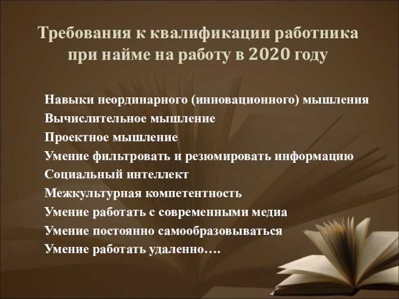 Слайд 21Требования к квалификации работника при найме на работу в 2020 году