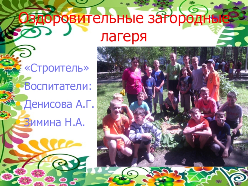Оздоровительные загородные лагеря«Строитель»Воспитатели:Денисова А.Г.Зимина Н.А.