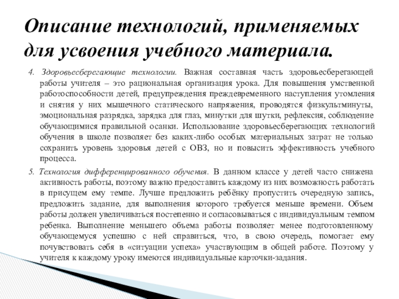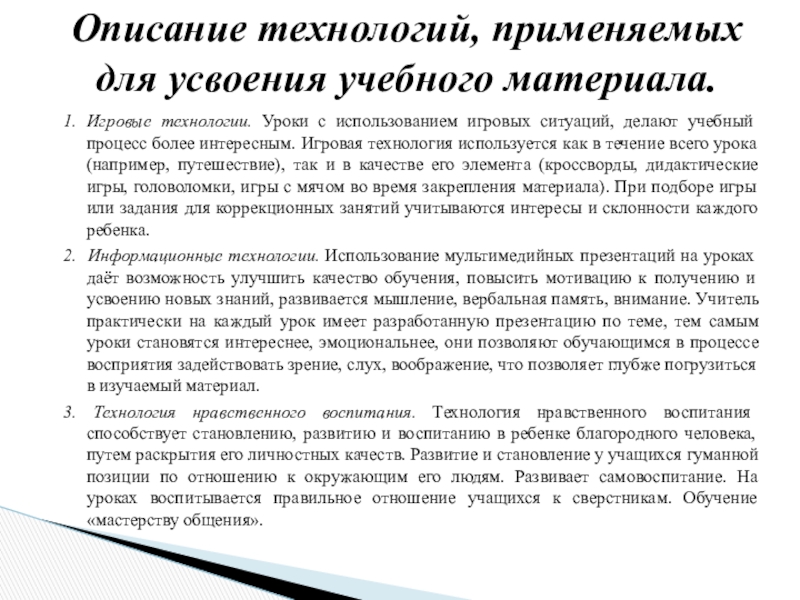 Описание технологий, применяемых для усвоения учебного материала.