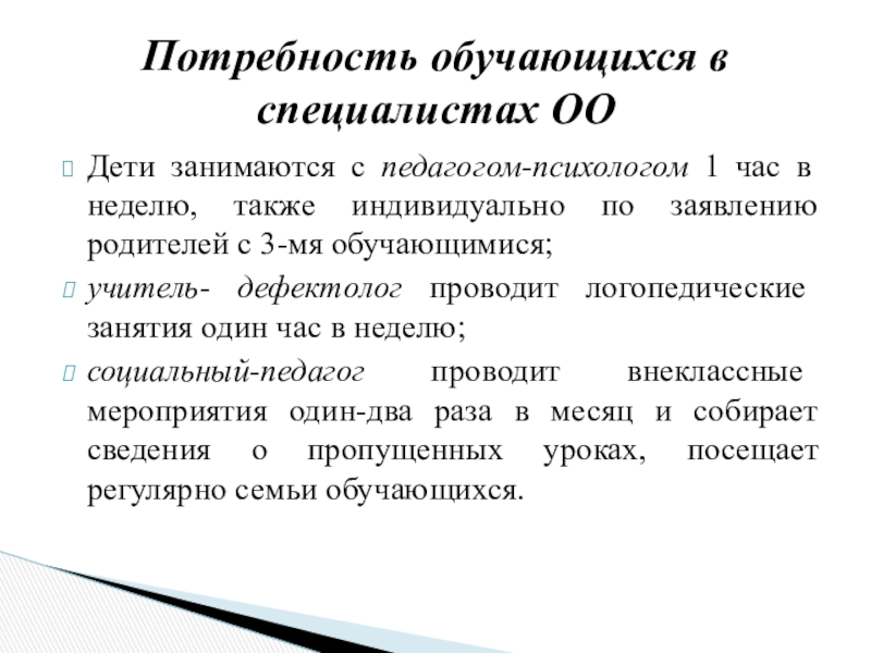 Потребность обучающихся в специалистах ОО