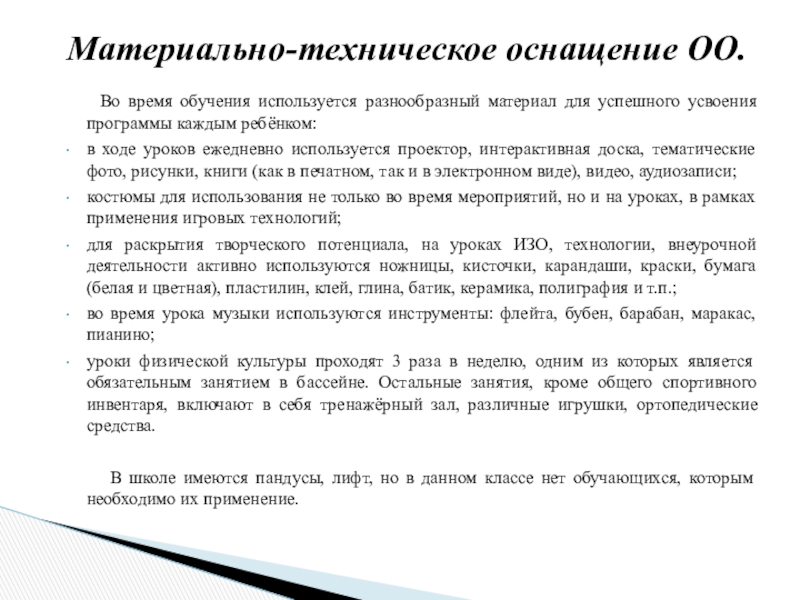 Материально-техническое оснащение ОО.