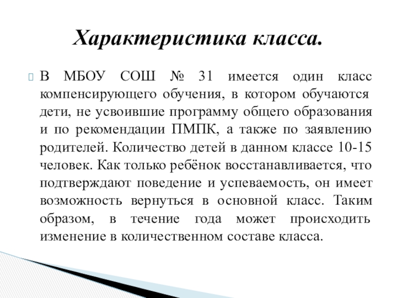 Характеристика класса.