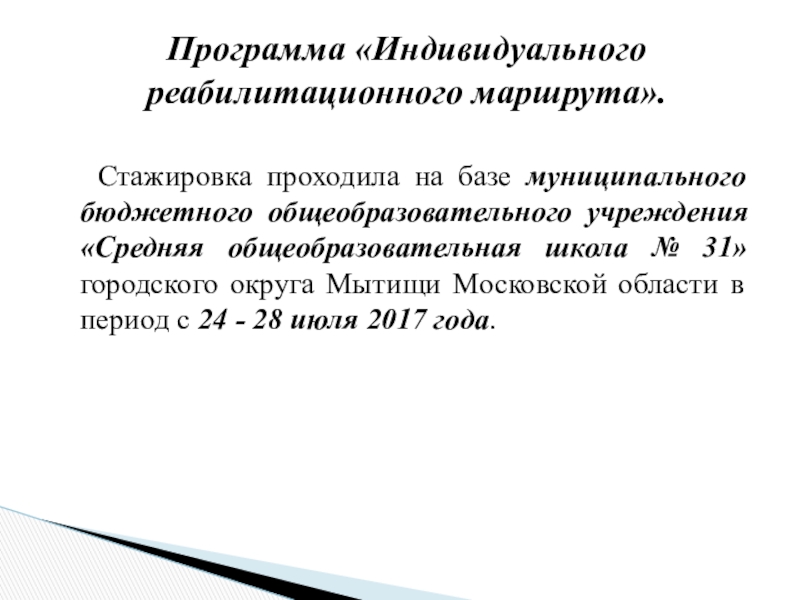 Программа «Индивидуального реабилитационного маршрута».