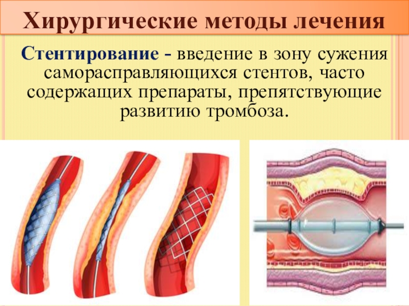 Стентирование - введение в зону сужения саморасправляющихся стентов, часто содержащих препараты,