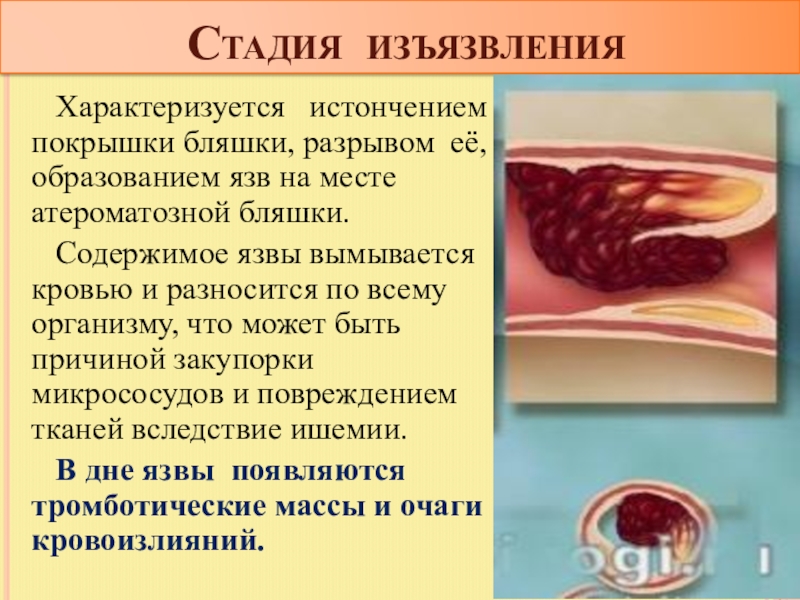 Характеризуется истончением покрышки бляшки, разрывом её, образованием