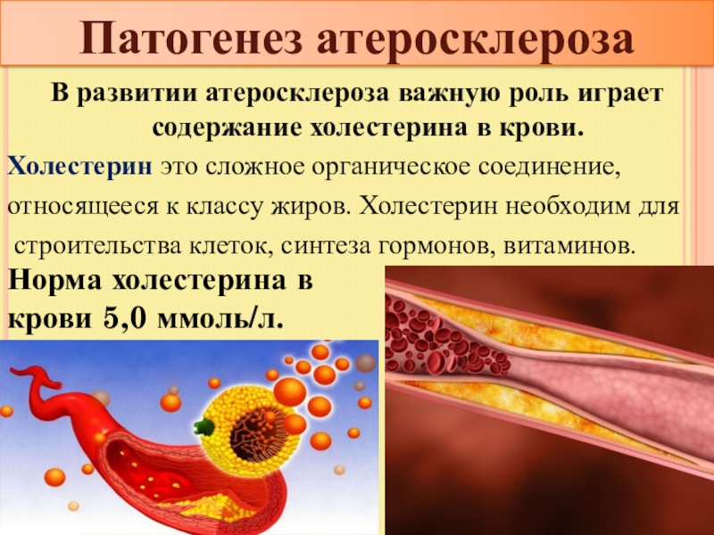 Слайд 12В развитии атеросклероза важную роль играет содержание холестерина в крови.