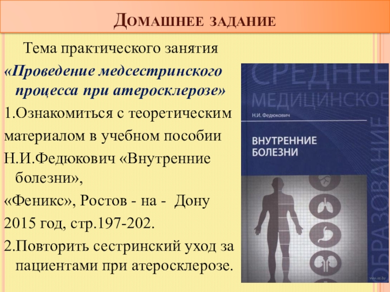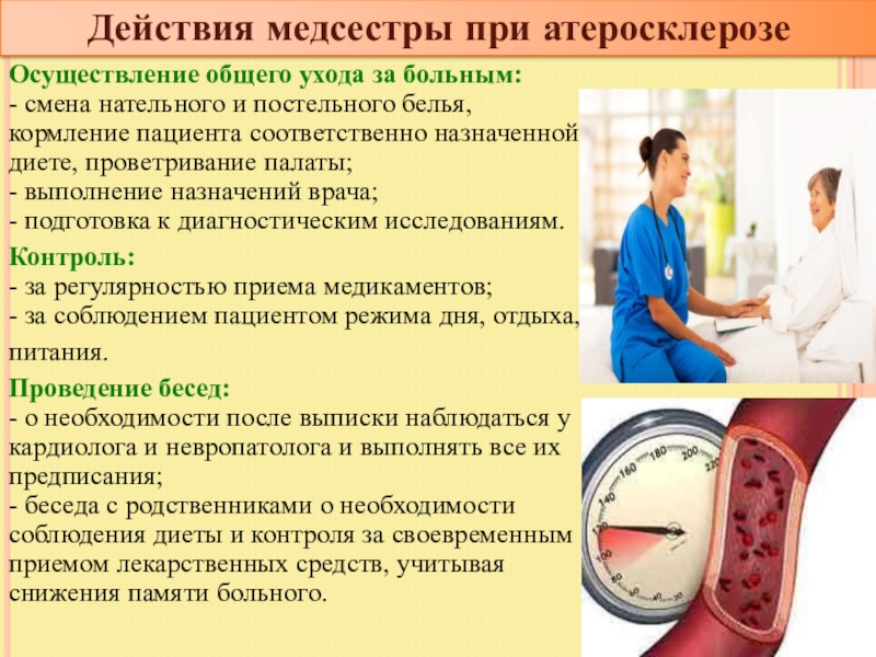 2.Повторить сестринский уход за пациентами при атеросклерозе.