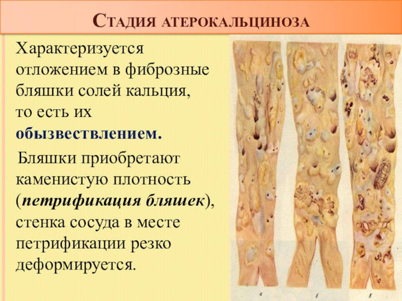 Характеризуется отложением в фиброзные бляшки солей кальция, то есть