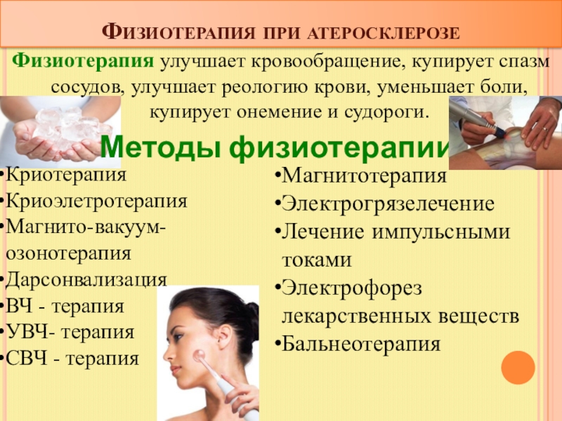 Физиотерапия улучшает кровообращение, купирует спазм сосудов, улучшает реологию крови, уменьшает