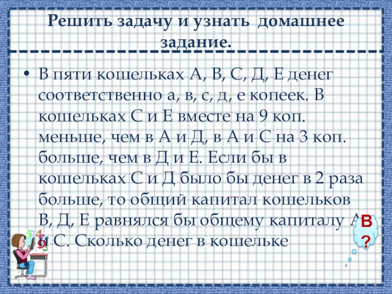 х = 5-у. Ответ: (8;-3)