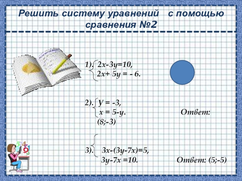 3у-7х =10. Ответ: (5;-5)