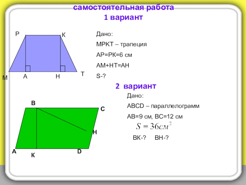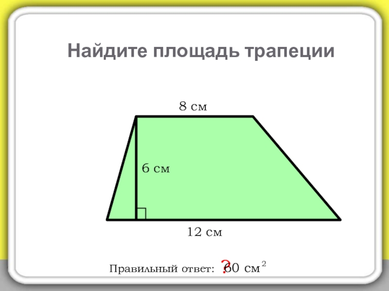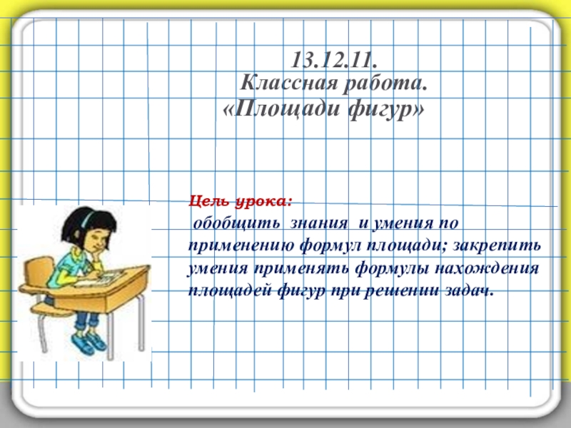 обобщить знания и умения по применению формул площади; закрепить умения применять формулы нахождения площадей фигур при решении задач.
