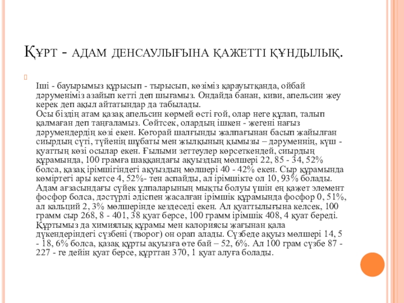 Слайд 5Құрт - адам денсаулығына қажетті құндылық.