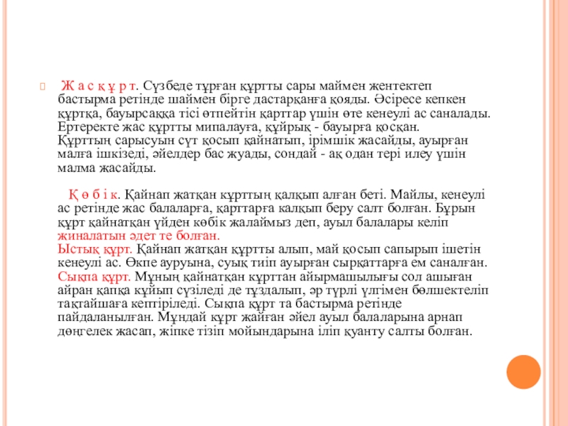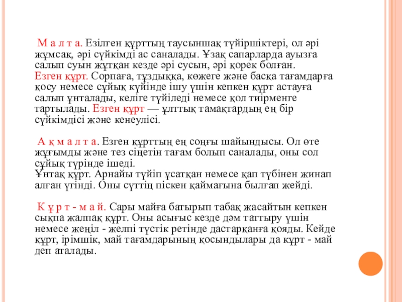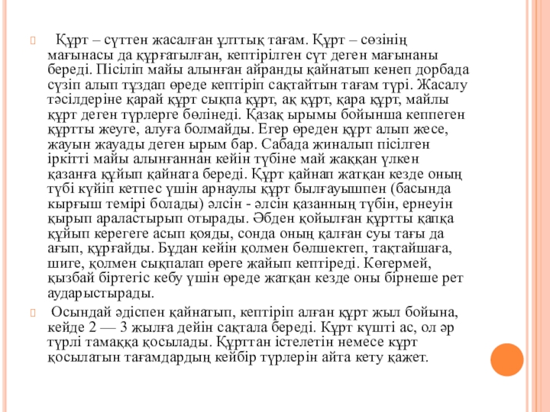 Слайд 7 Құрт – сүттен жасалған ұлттық тағам. Құрт – сөзінің мағынасы