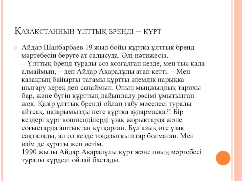 Слайд 13Қазақстанның ұлттық бренді – құрт