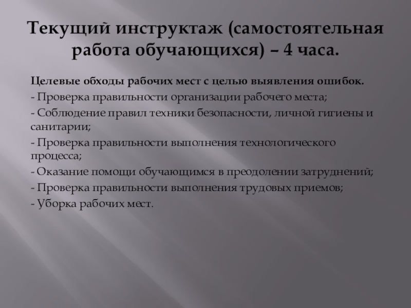 Слайд 12Текущий инструктаж (самостоятельная работа обучающихся) – 4 часа.