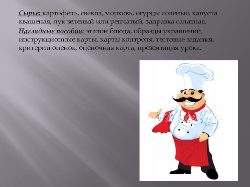 - Сообщение темы урока «Приготовление винегрета овощного»