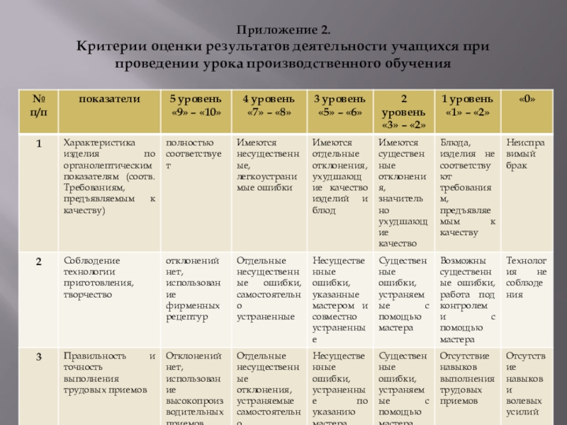 Критерии оценки результатов деятельности учащихся при проведении урока производственного обучения