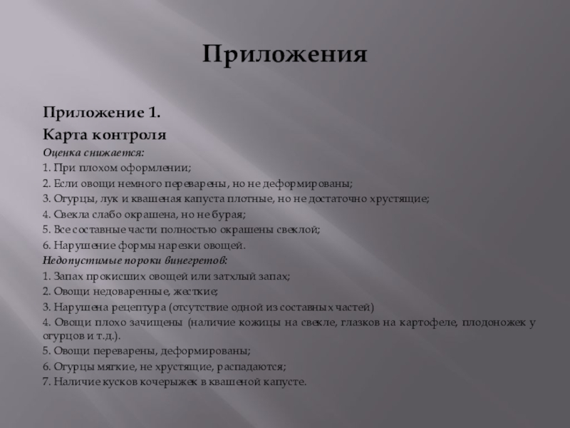Недопустимые пороки винегретов: