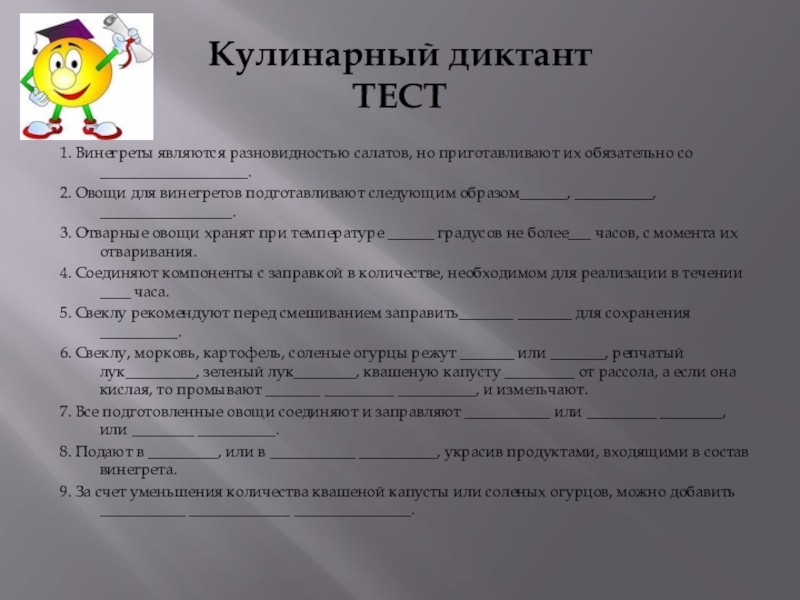 Слайд 10Кулинарный диктант
