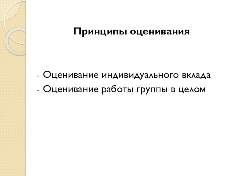 Принципы оцениванияОценивание индивидуального вкладаОценивание работы группы в целом