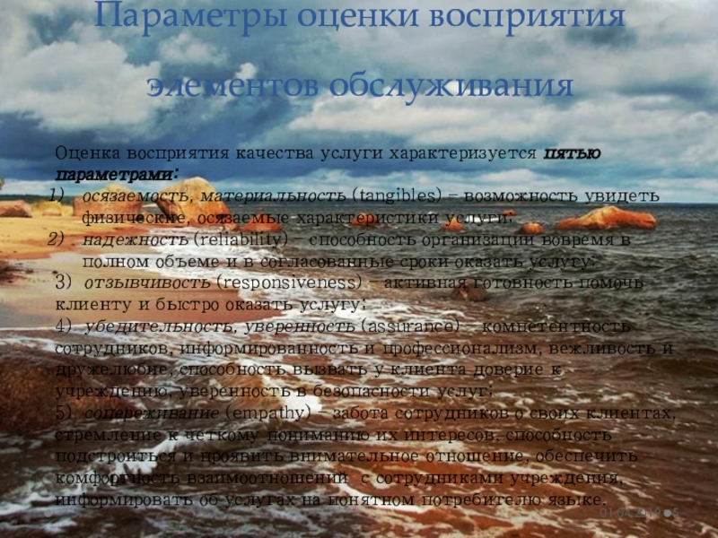 Оценка восприятия качества услуги характеризуется пятью параметрами: