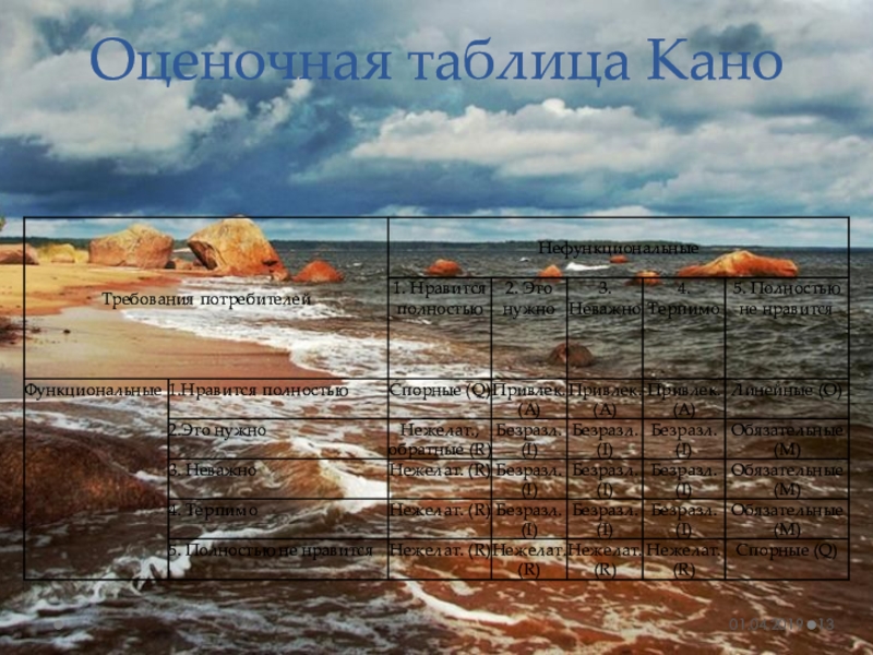После получения оценок респондентов исследователь использует специальную оценочную таблицу для определения категории, к которой потребитель относит ту или иную характеристику продукта.
