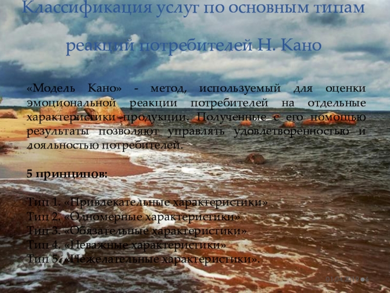 Слайд 6Классификация услуг по основным типам реакций потребителей Н. Кано