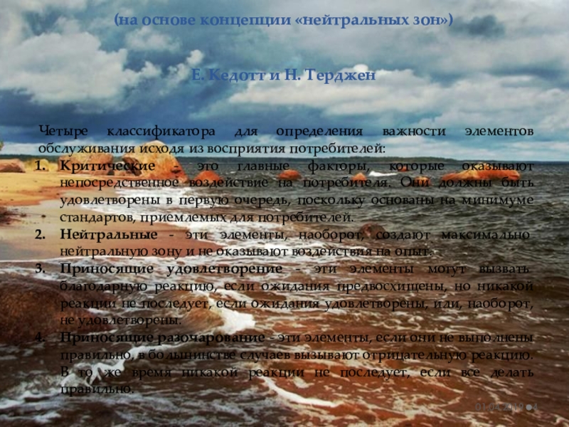Следует учесть, что чем более важными для потребителя являются те или иные элементы обслуживания, тем более узкой является нейтральная зона, тем в меньшей степени нейтральным будет оставаться потребитель в отношении предлагаемого обслуживания.